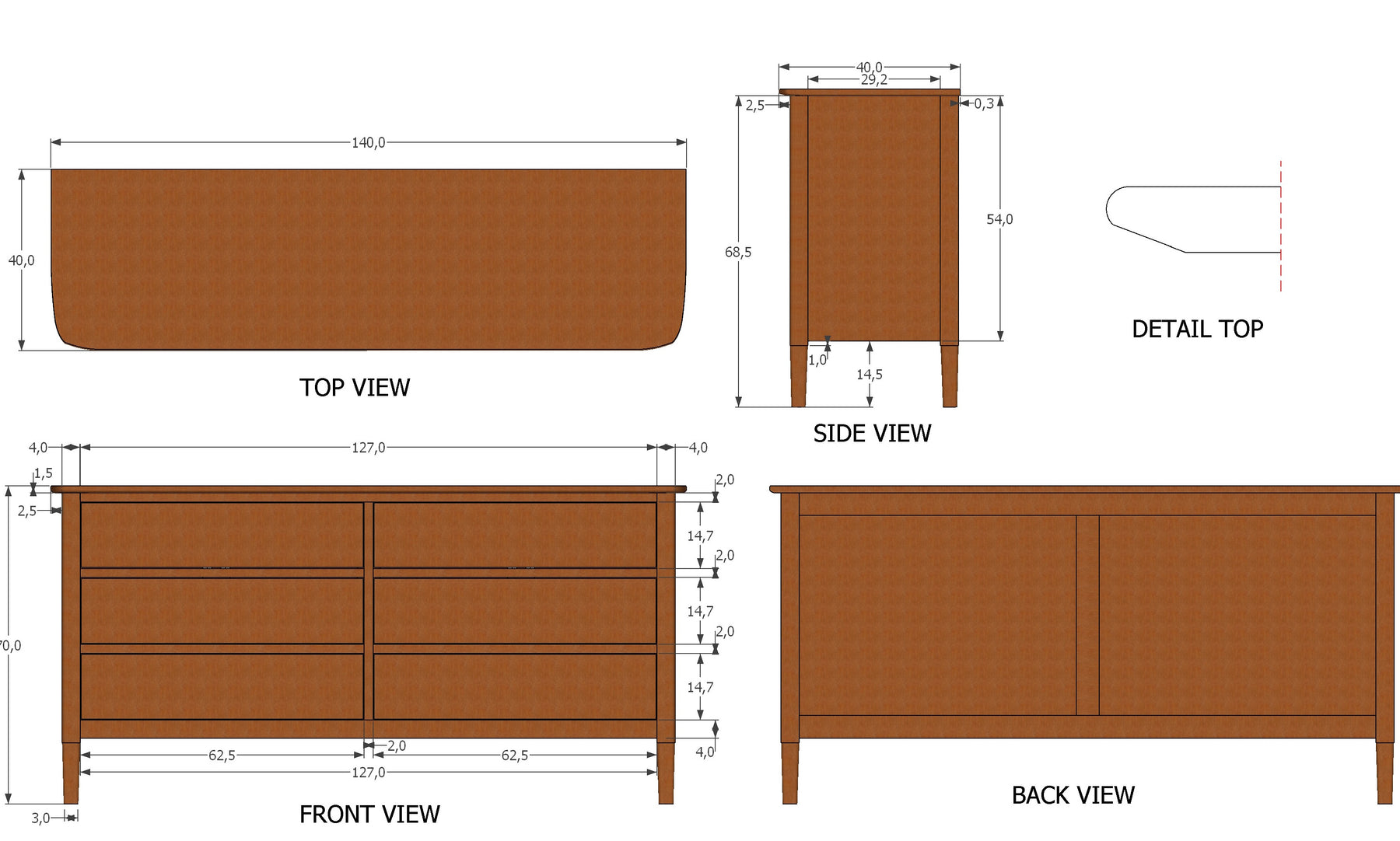Norway Walnut 6 Drawer Chest of Drawers