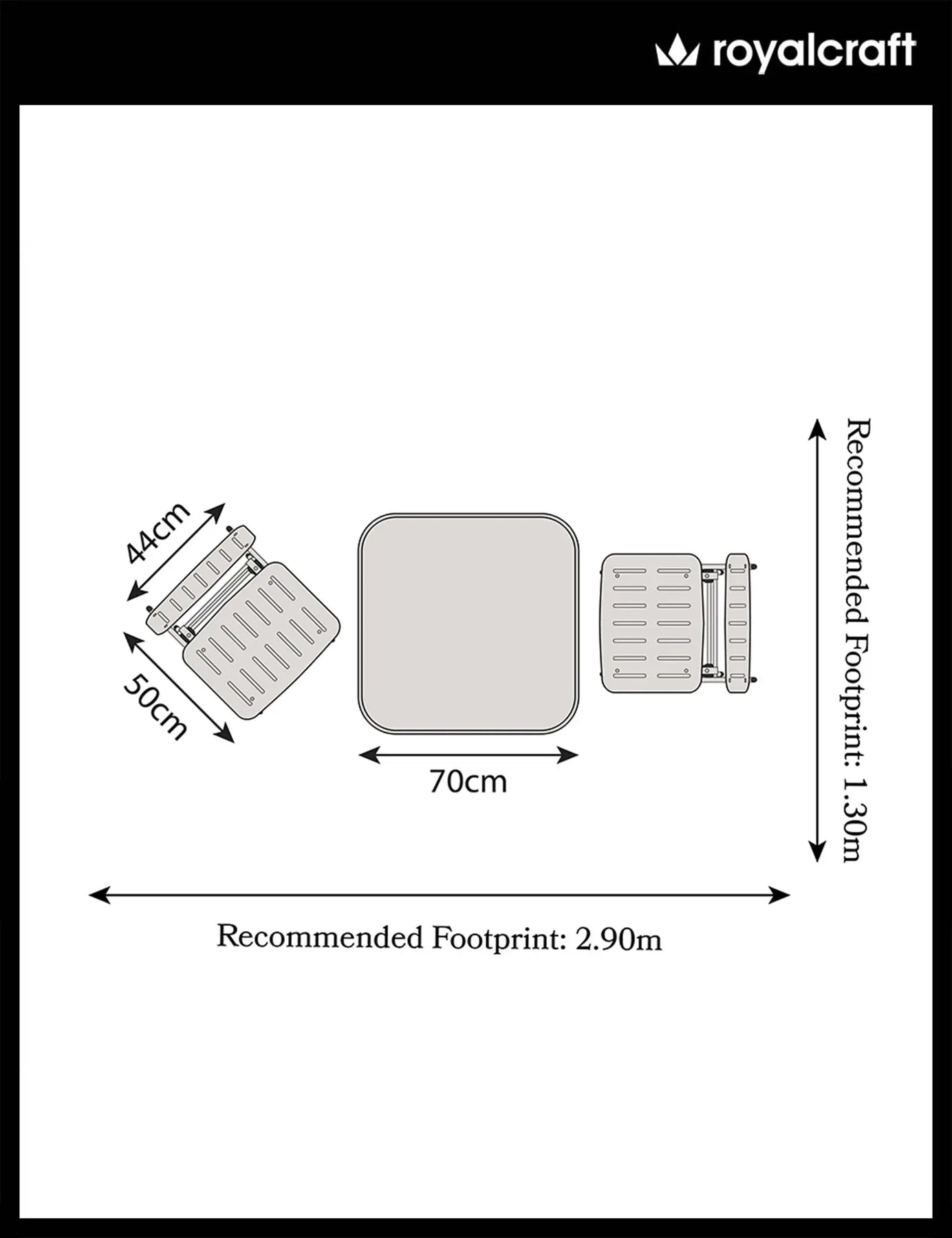 - Table measures 70cm wide x 70cm deep and 71cm tall