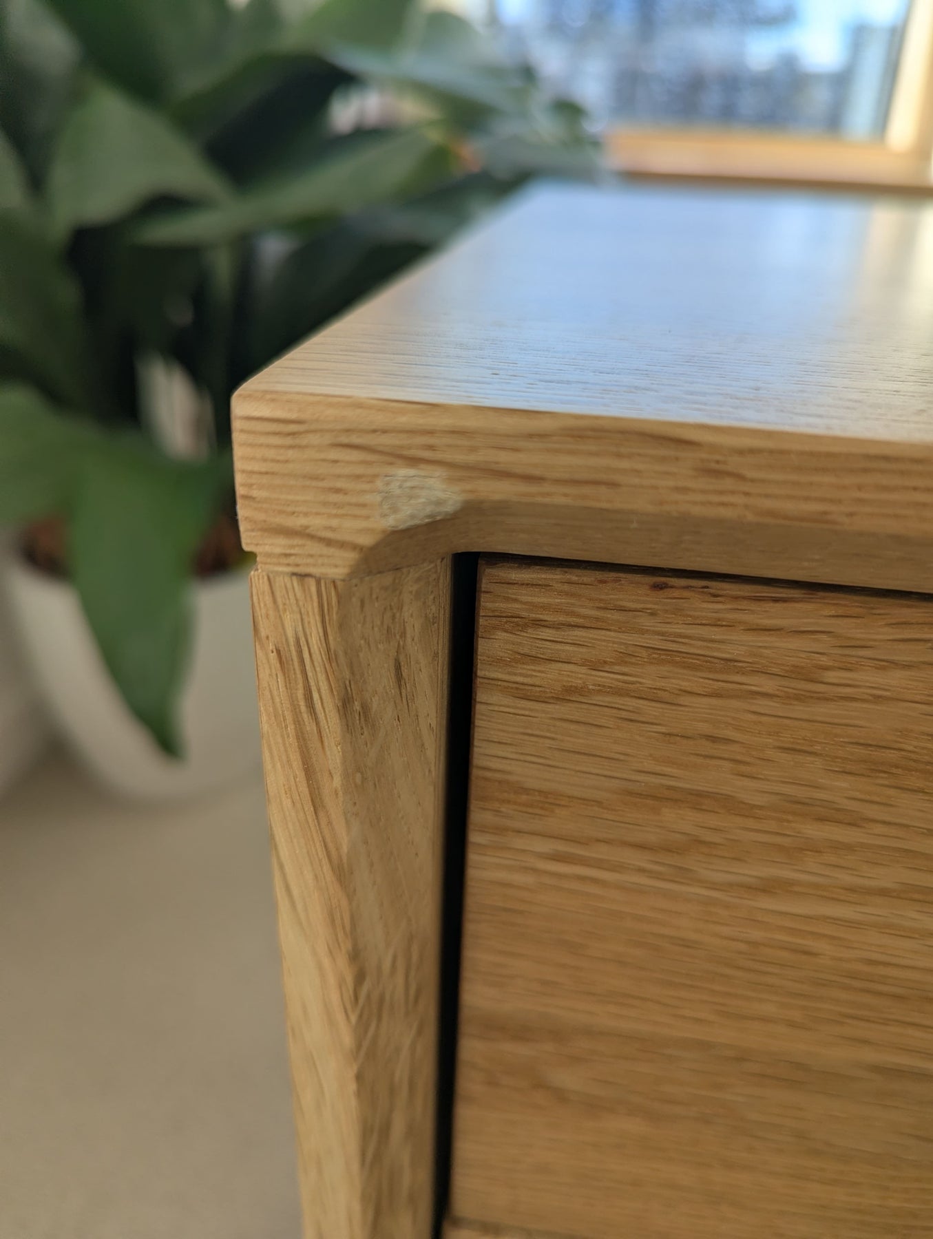 Wright Oak Bedside Table (Small Chip)
